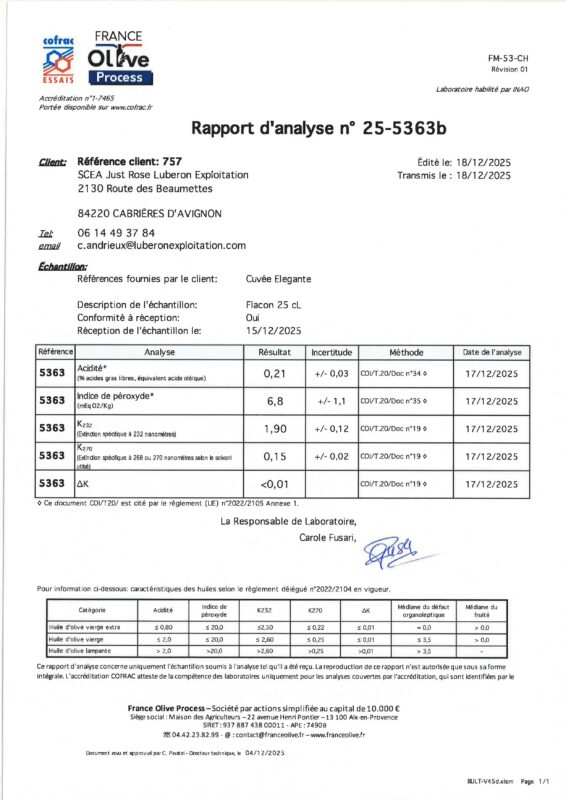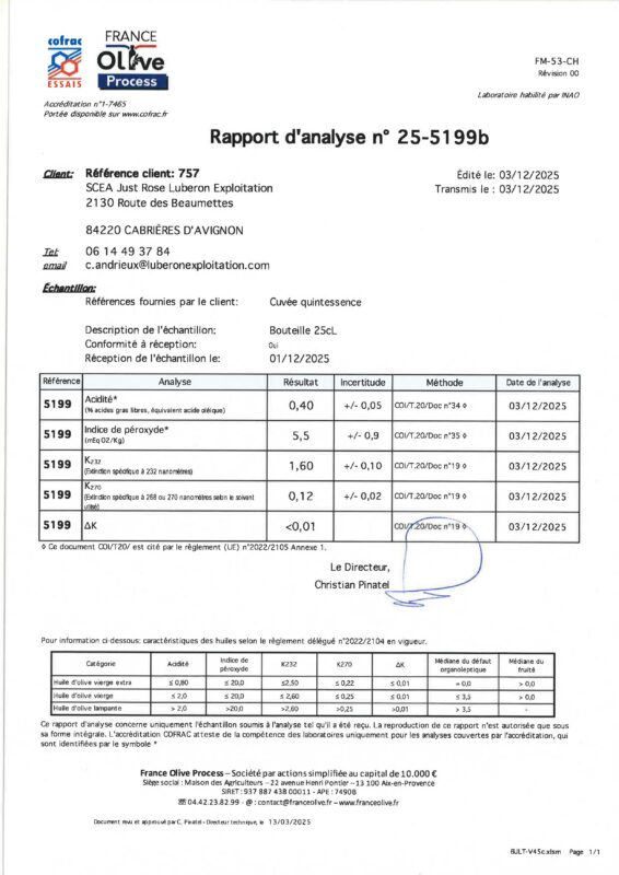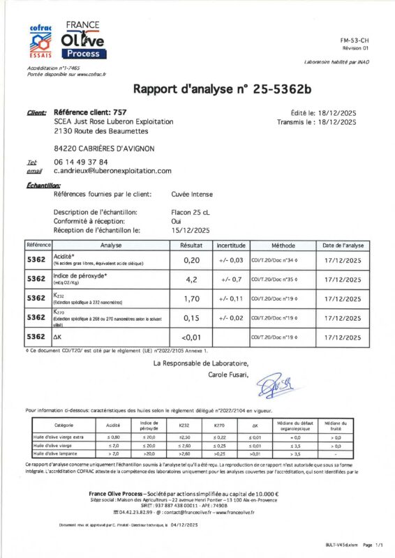 Nous vous présentons donc en toute transparence l’analyse sensorielle et l’analyse technique de nos huiles.