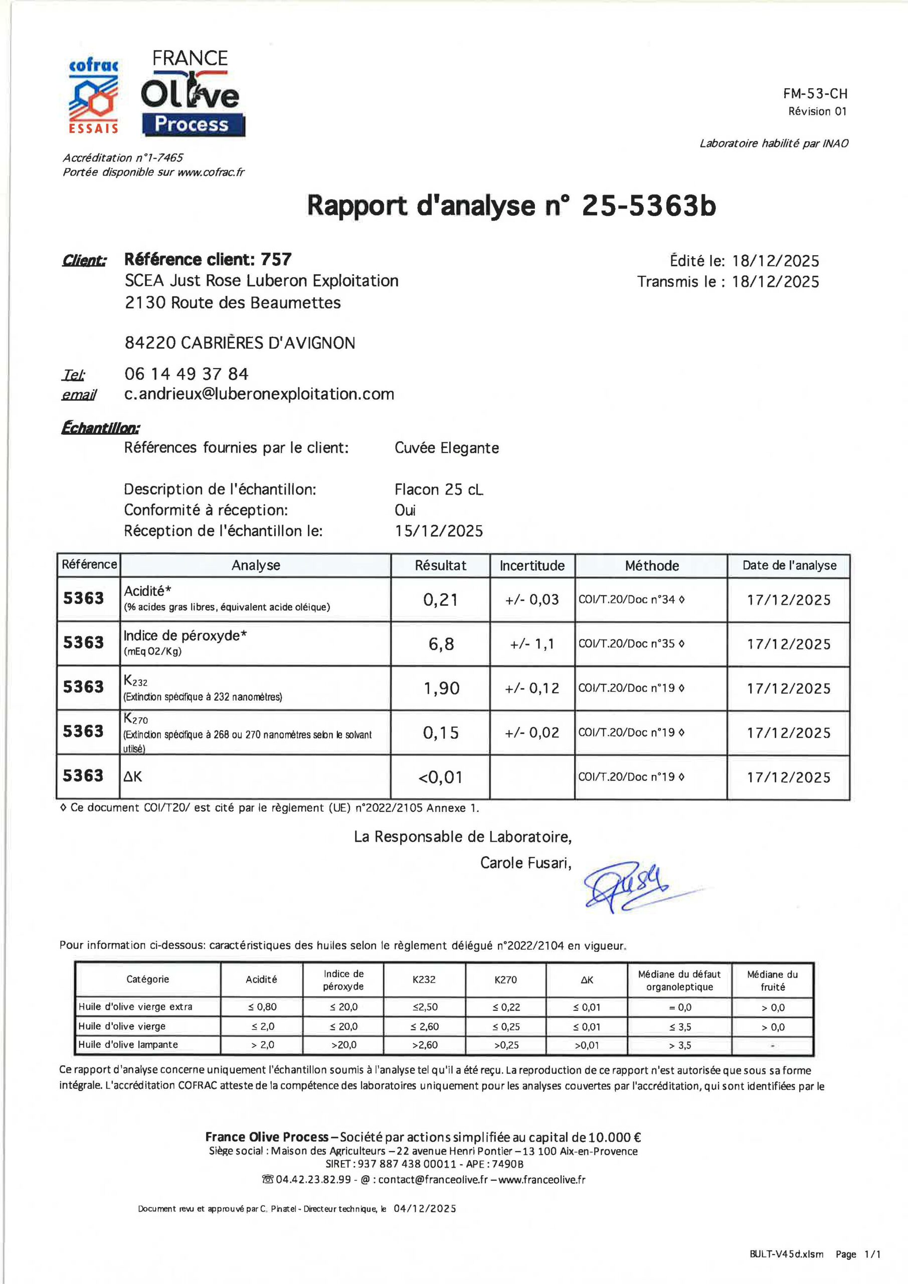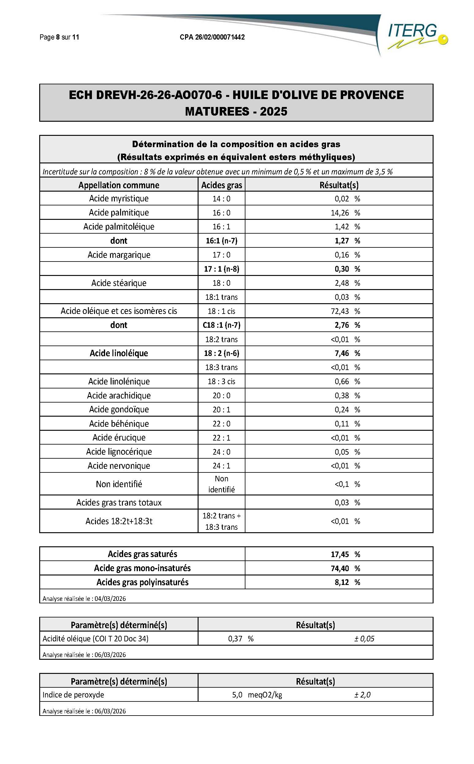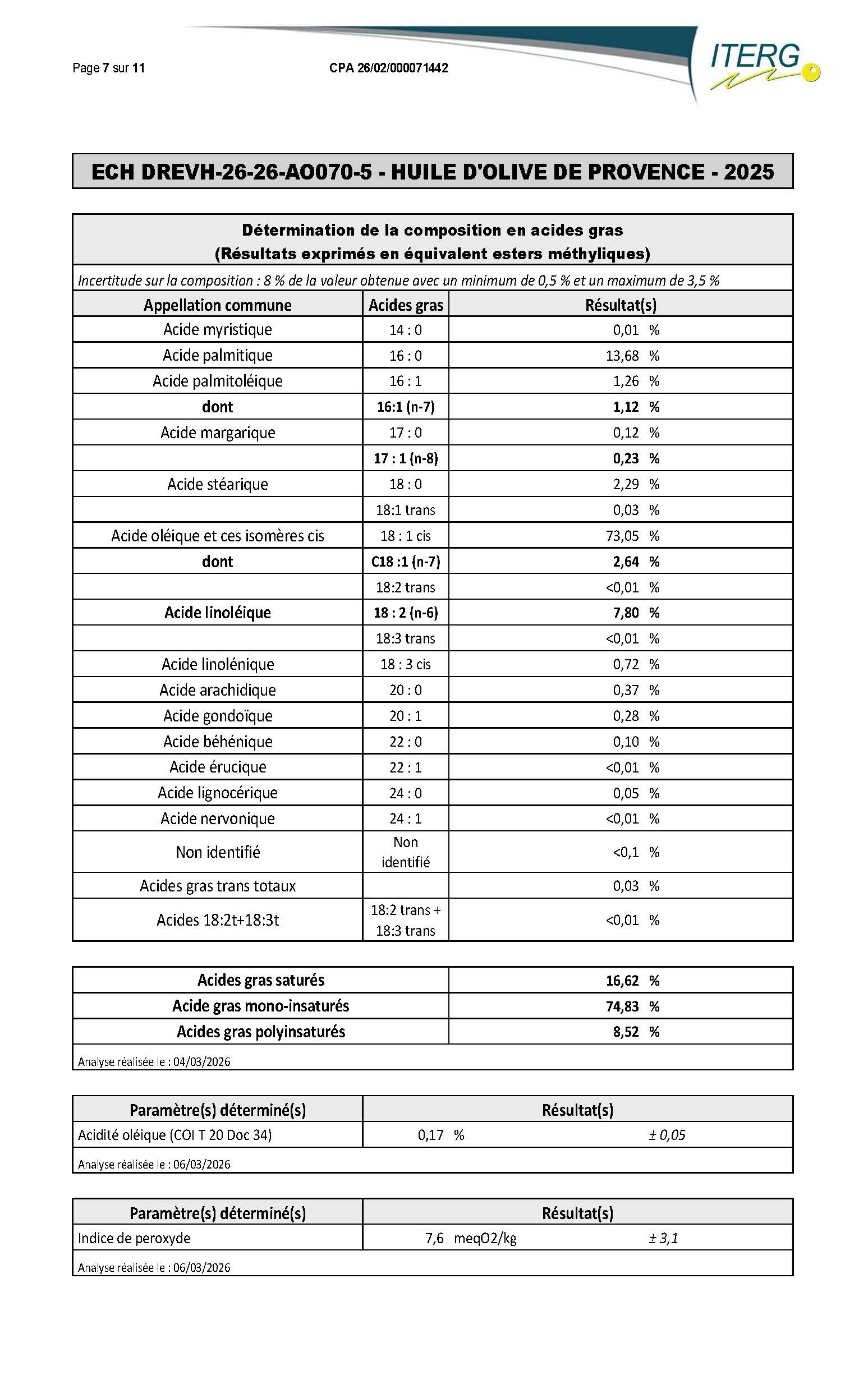 Nous vous présentons donc en toute transparence l’analyse sensorielle et l’analyse technique de nos huiles.